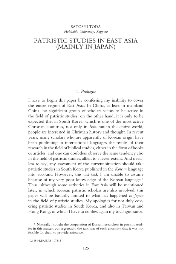Patristic Studies in East Asia (Mainly in Japan), Page 1 of 1
