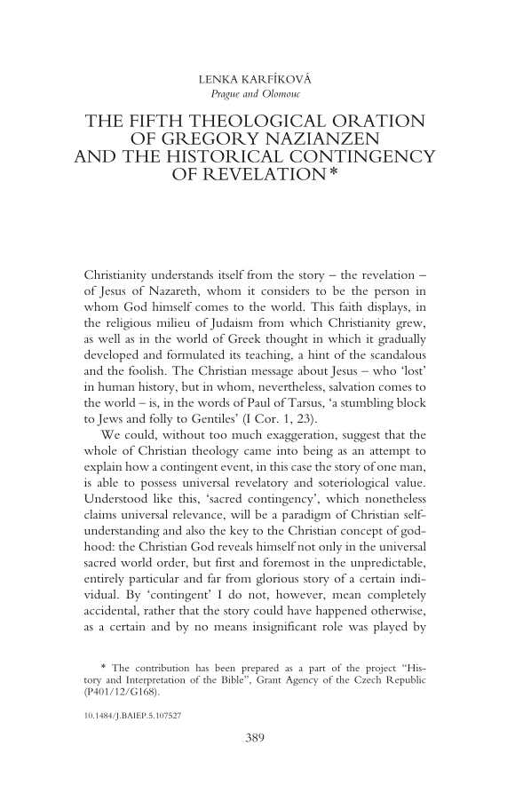 The Fifth Theological Oration of Gregory Nazianzen and the Historical Contingency of Revelation, Page 1 of 1