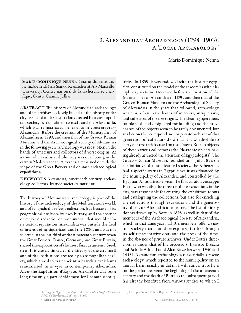 Alexandrian Archaeology (1798–1903). A ‘Local Archaeology’, Page 1 of 1