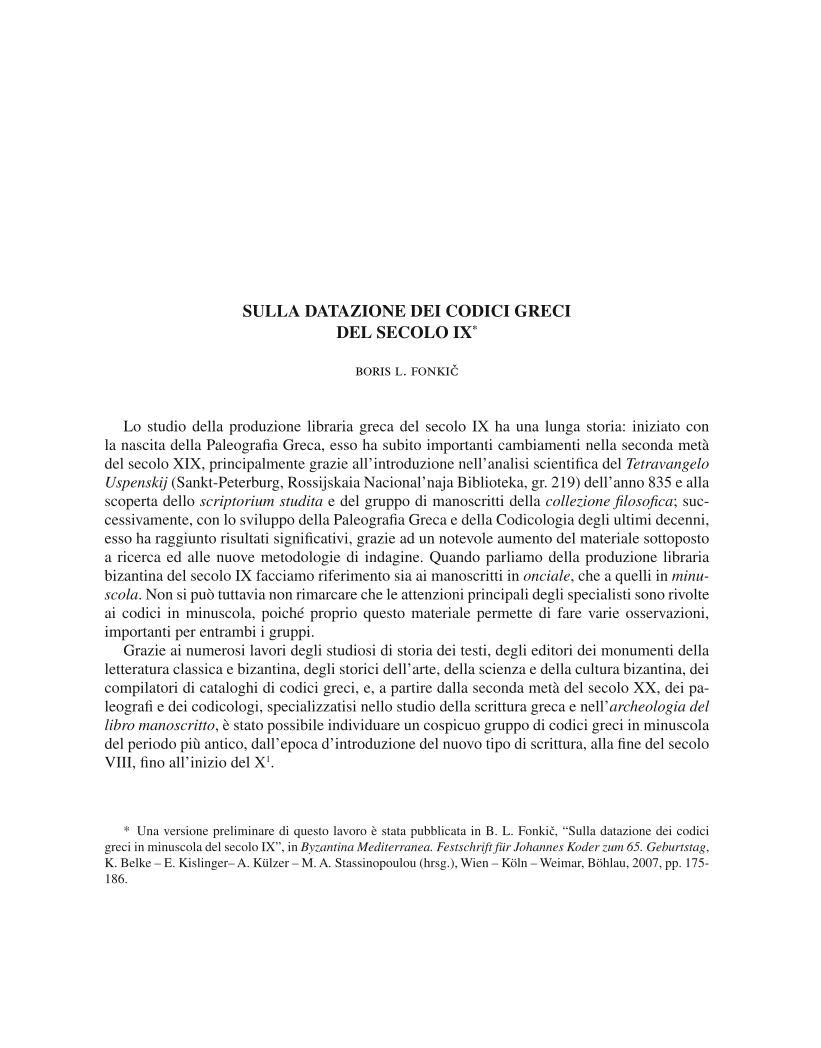 Sulla datazione dei codici greci del secolo IX, Page 1 of 1