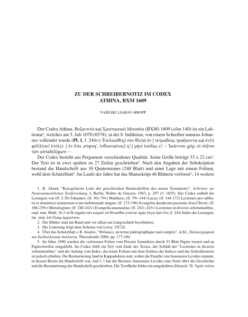 Zu der Schreibernotiz im Codex Athina, BXM 1609, Page 1 of 1