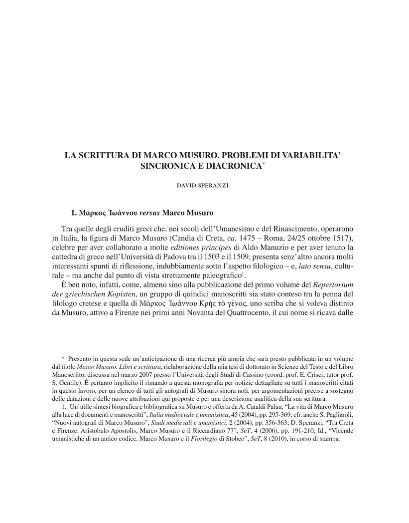 La scrittura di Marco Musuro. Problemi di variabilità sincronica e diacronica, Page 1 of 1