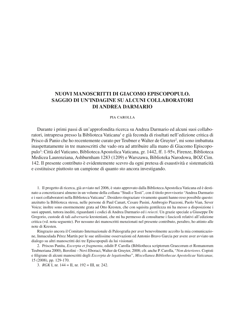 Nuovi manoscritti di Giacomo Episcopopulo. Saggio di un’indagine su alcuni collaboratori di Andrea Darmario, Page 1 of 1