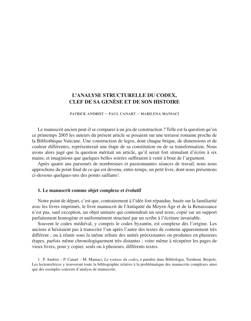L’analyse structurelle du codex, clef de sa genèse et de son histoire, Page 1 of 1