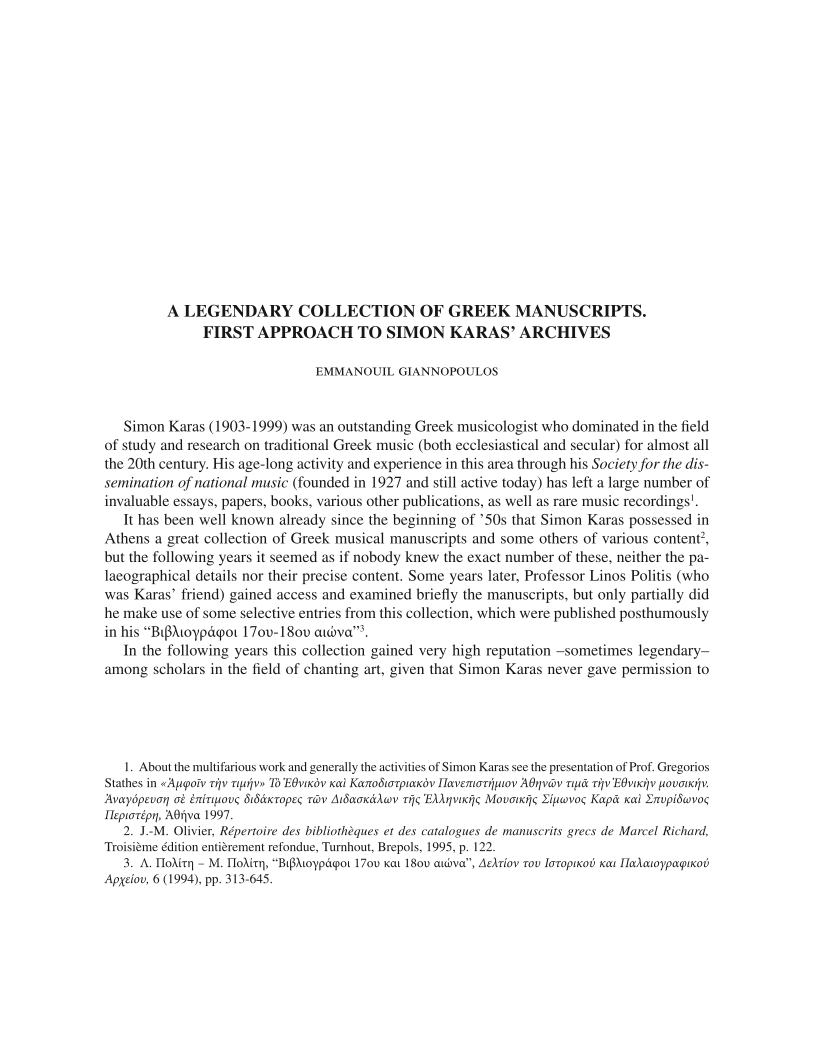A legendary Collection of Greek Manuscripts. First Approach to Simon Karas’ Archives, Page 1 of 1
