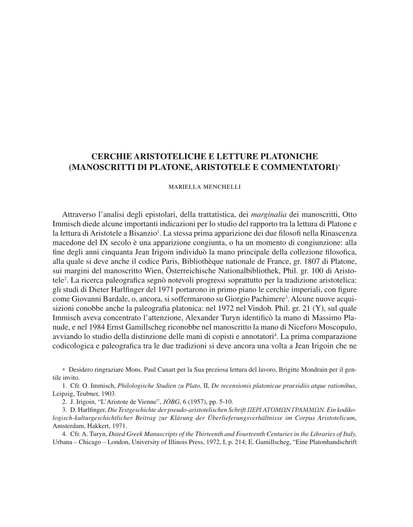 Cerchie aristoteliche e letture platoniche (Manoscritti di Platone, Aristotele e commentatori), Page 1 of 1