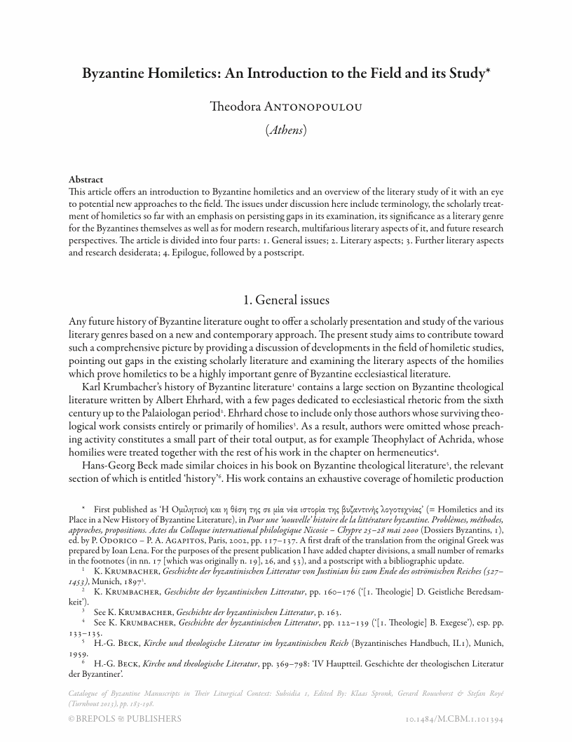 Byzantine Homiletics: An Introduction to the Field and its Study, Page 1 of 1