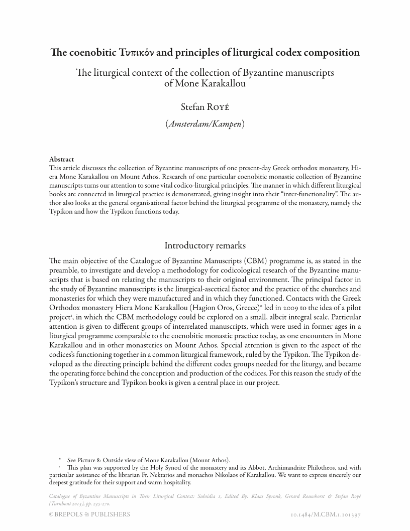 The coenobitic Τυπικόν and principles of liturgical codex composition. The liturgical context of the collection of Byzantine manuscripts of Mone Karakallou, Page 1 of 1
