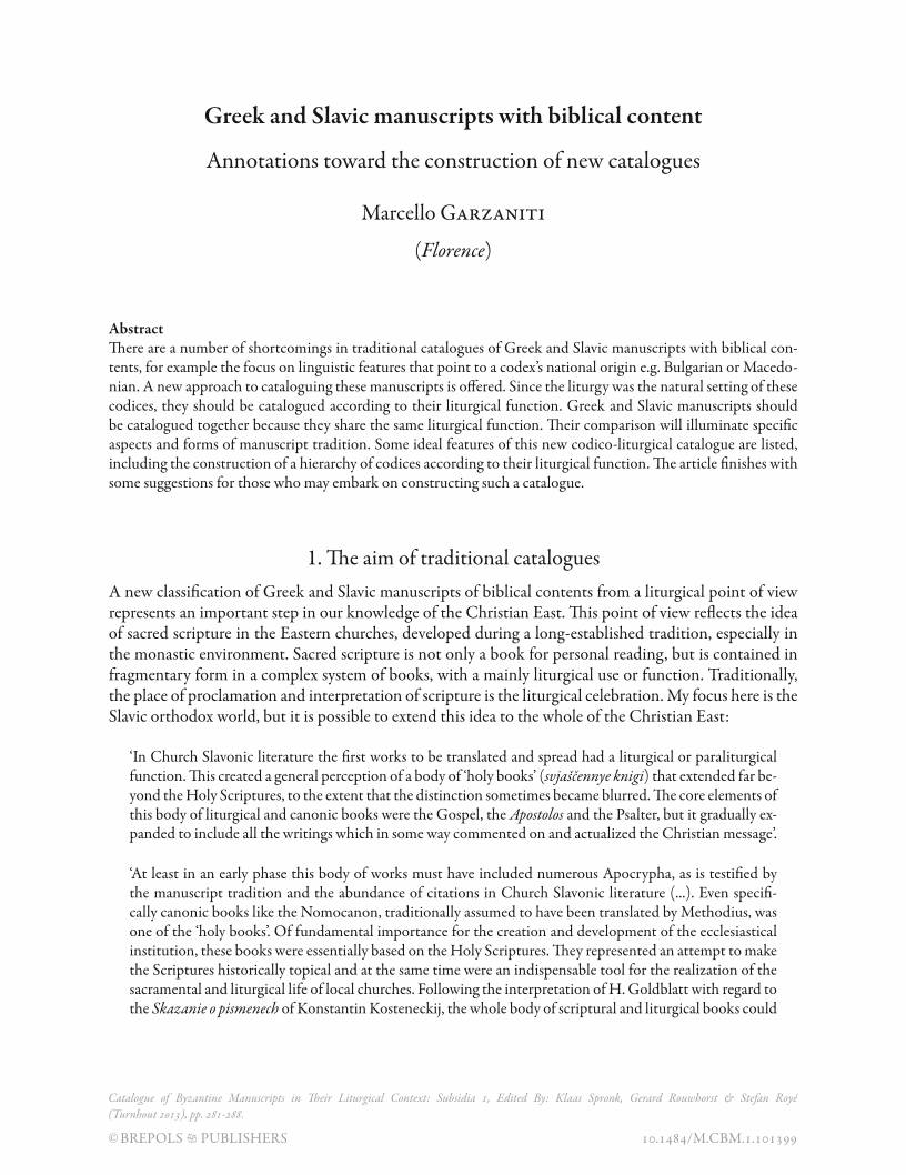 Greek and Slavic manuscripts with biblical content. Annotations toward the construction of new catalogues, Page 1 of 1