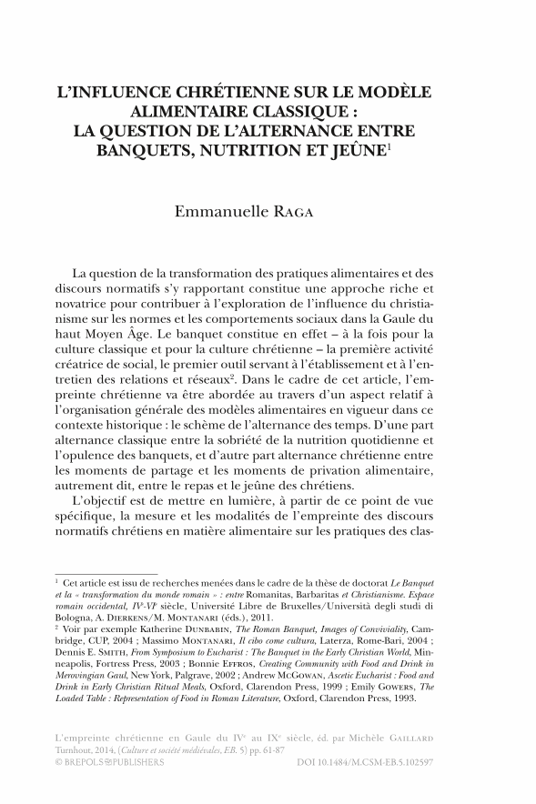 L’influence chrétienne sur le modèle alimentaire classique : la question de l’alternance entre banquets, nutrition et jeûne, Page 1 of 1