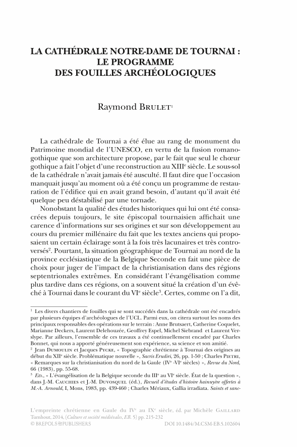 La cathédrale Notre-Dame de Tournai : le programme des fouilles archéologiques, Page 1 of 1