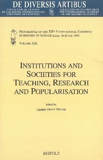 This volume is devoted to scientific institutions from the 17th to the 20th century. It consists of three parts: the first deals with teaching and research institutions (universities, technical schools, foundations); the second is about scholarly societies (academies, amateur societies, industrial societies); the last deals with scientific popularisation initiatives, notably those of newspapers. Several papers concern the role of women in scientific communities.