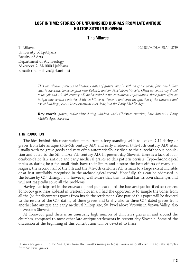 Lost in Time: Stories of Unfurnished Burials from Late Antique Hilltop Sites in Slovenia, Page 1 of 1