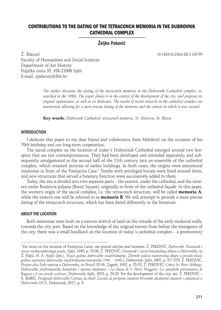 Contributions to the Dating of the Tetraconch Memoria in the Dubrovnik Cathedral Complex, Page 1 of 1
