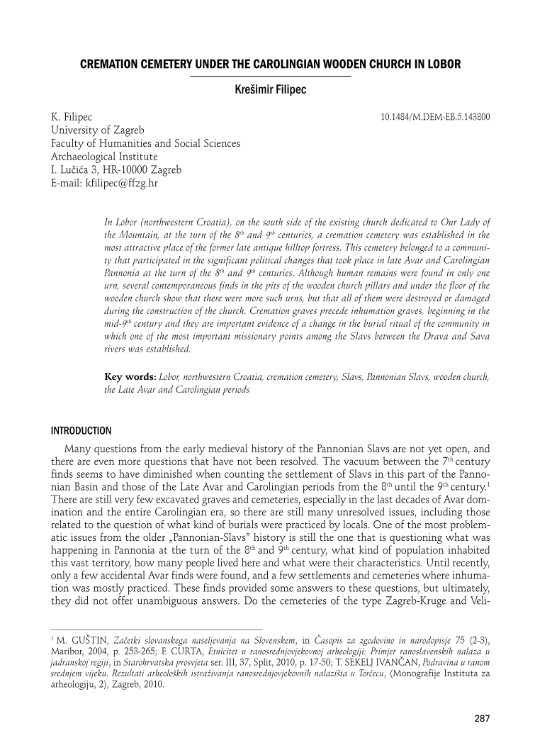Cremation Cemetery Under the Carolingian Wooden Church in Lobor, Page 1 of 1