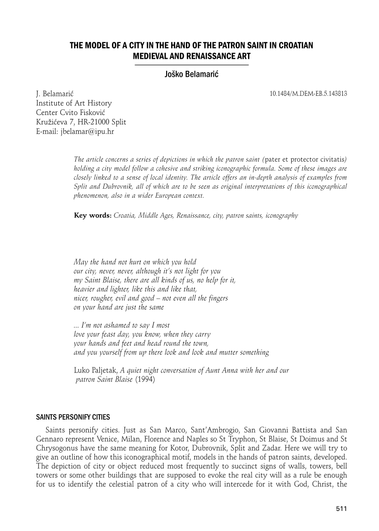 The Model of a City in the Hand of the Patron Saint in Croatian Medieval and Renaissance Art, Page 1 of 1
