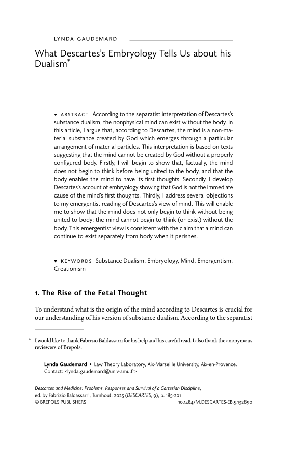 What Descartes’s Embryology Tells Us about his Dualism, Page 1 of 1