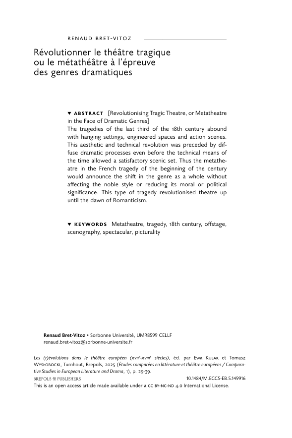 - Publication: Les (r)évolutions dans le théâtre européen (xvii e-xviii e siècles) , pp 29-39