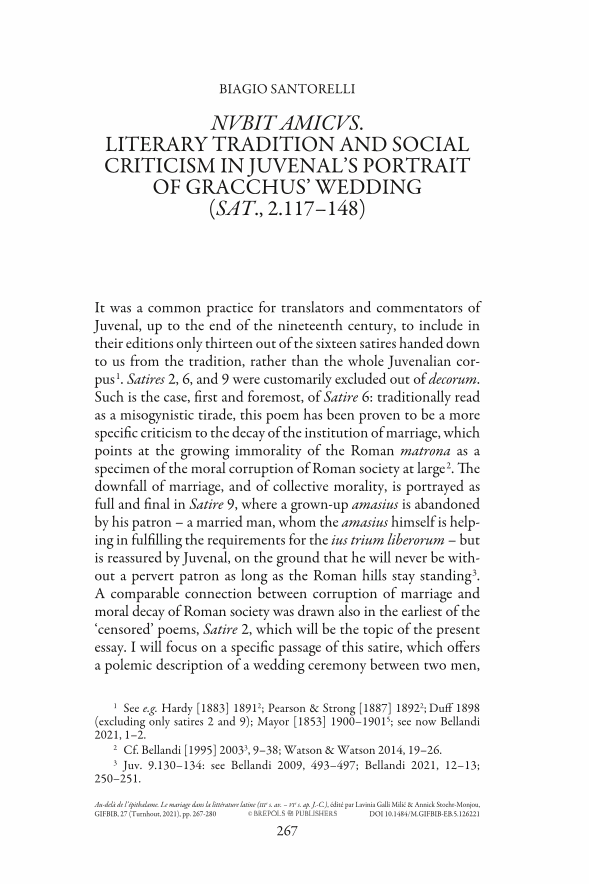 Nubit amicus. Literary Tradition and Social Criticism in Juvenal’s Portrait of Gracchus’ Wedding (Sat., 2.117-148), Page 1 of 1