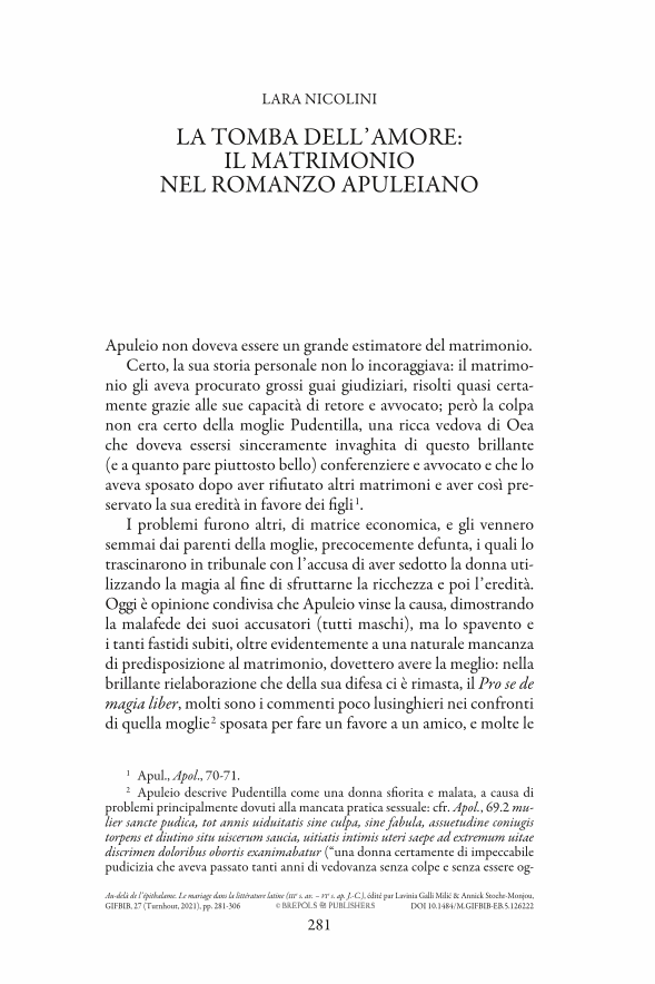 La tomba dell’amore: il matrimonio nel romanzo apuleiano, Page 1 of 1