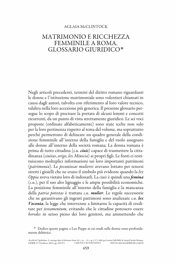 Matrimonio e ricchezza femminile a Roma. Glossario giuridico, Page 1 of 1