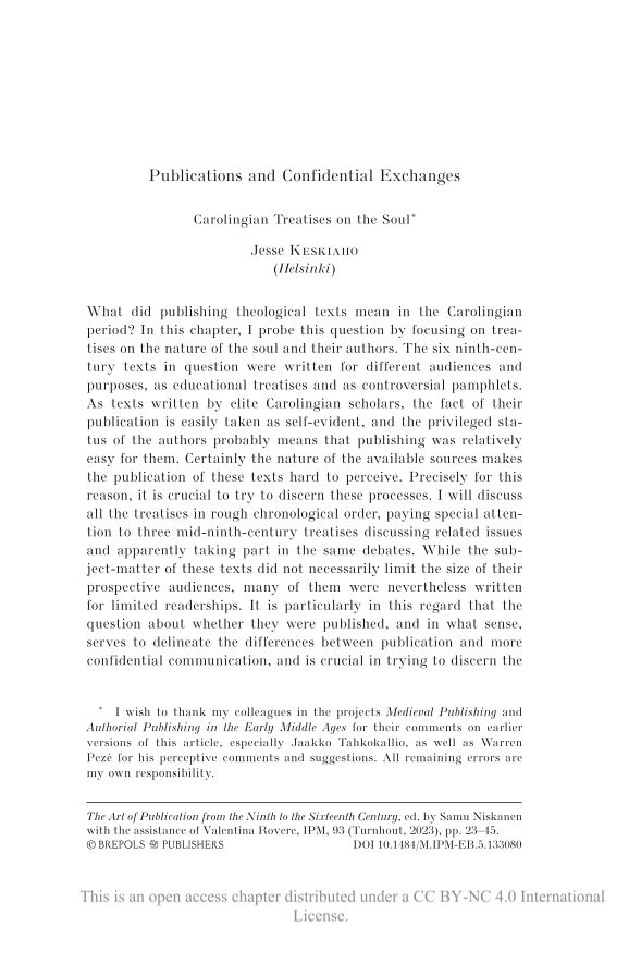 Publications and Confidential Exchanges: Carolingian Treatises on the Soul, Page 1 of 1