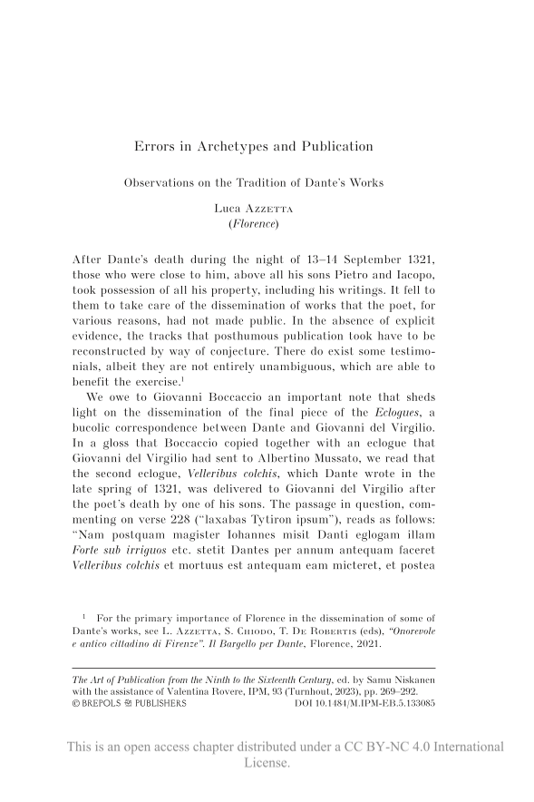 Errors in Archetypes and Publication: Observations on the Tradition of Dante’s Works, Page 1 of 1