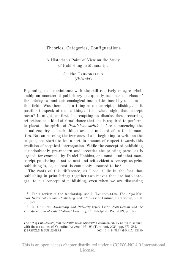 Theories, Categories, Configurations: A Historian’s Point of View on the Study of Publishing in Manuscript, Page 1 of 1