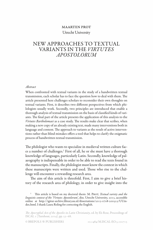 New approaches to textual variants in the Virtutes apostolorum, Page 1 of 1