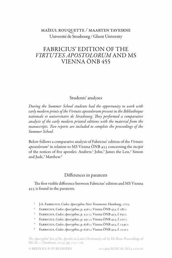 Fabricius’ edition of the Virtutes apostolorum and MS Vienna ÖNB 455, Page 1 of 1