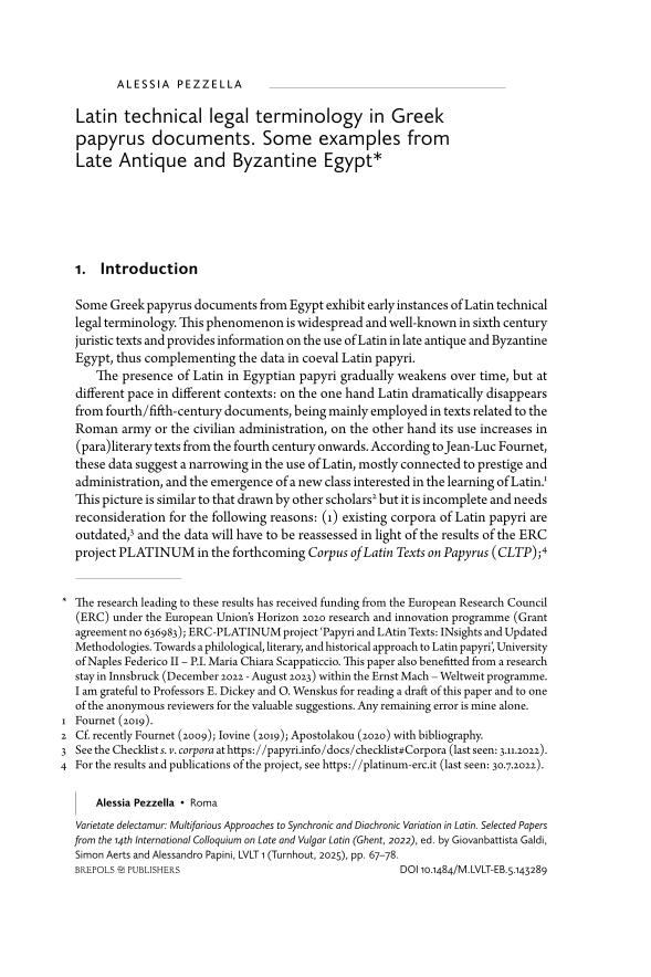 Latin technical legal terminology in Greek papyrus documents . Some examples from Late Antique and Byzantine Egypt, Page 1 of 1