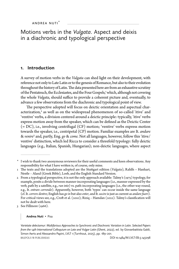 Motions verbs in the Vulgata. Aspect and deixis in a diachronic and typological perspective, Page 1 of 1