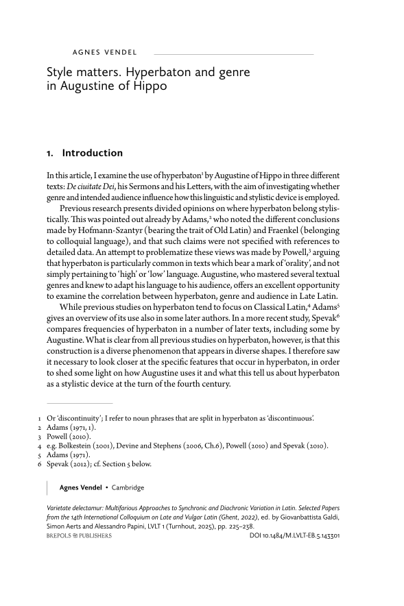 Style matters. Hyperbaton and genre in Augustine of Hippo, Page 1 of 1