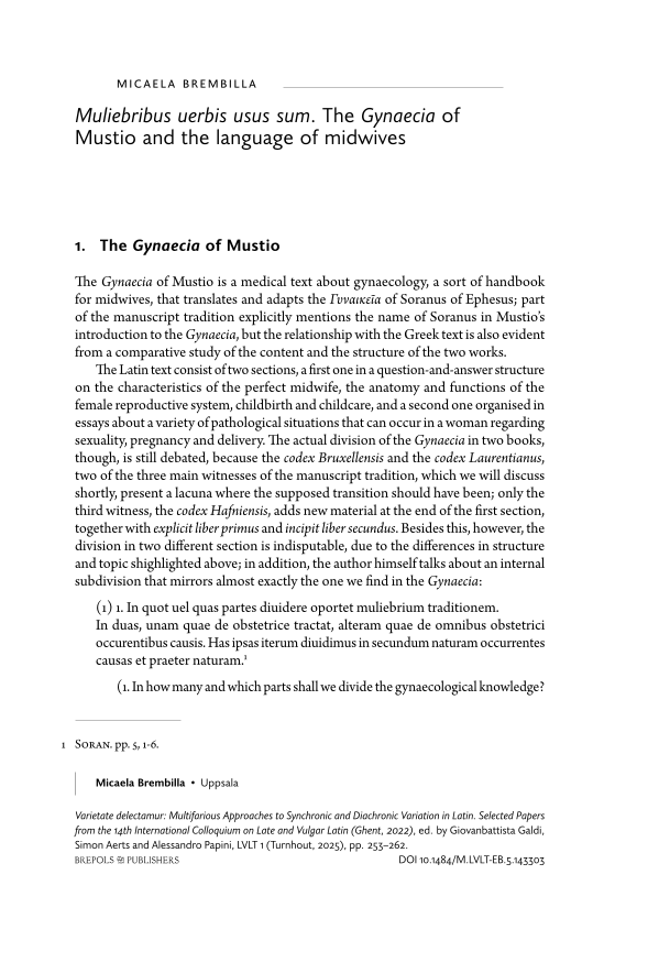 Muliebribus uerbis usus sum. The Gynaecia of Mustio and the language of midwives, Page 1 of 1
