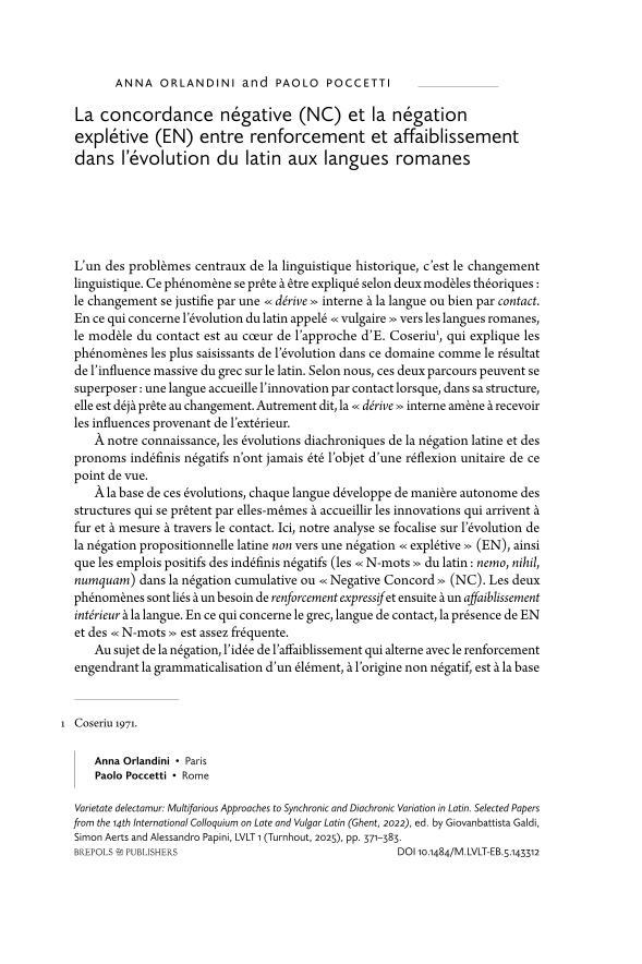 La concordance négative (NC) et la négation explétive (EN) entre renforcement et affaiblissement dans l’évolution du latin aux langues romanes, Page 1 of 1