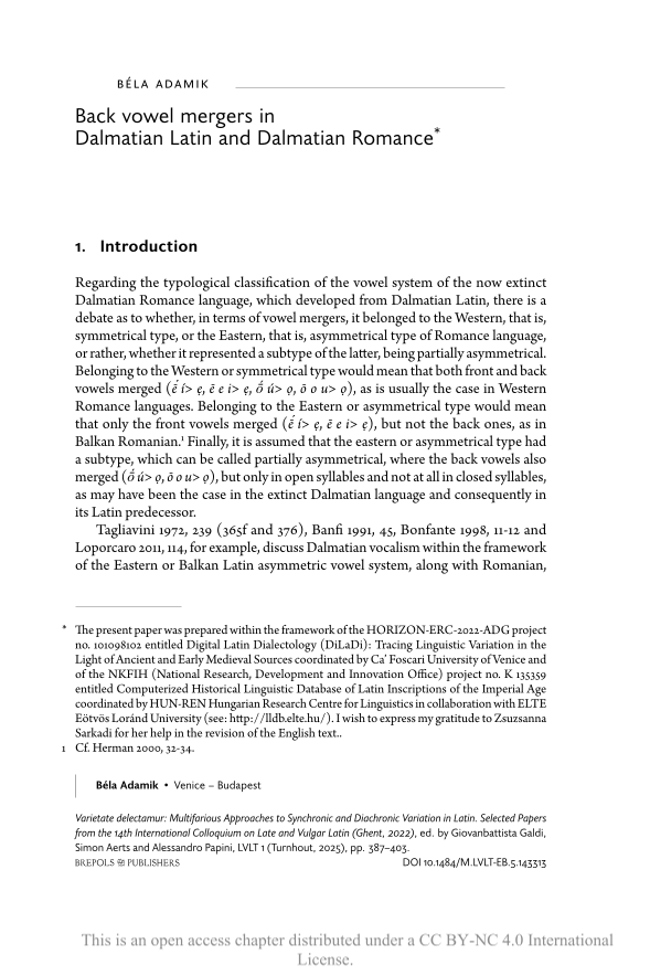 Back vowel mergers in Dalmatian Latin and Dalmatian Romance, Page 1 of 1