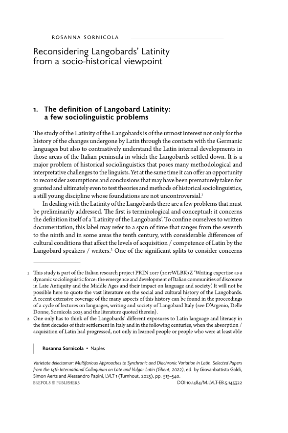 Reconsidering Langobards’ Latinity from a socio-historical viewpoint, Page 1 of 1