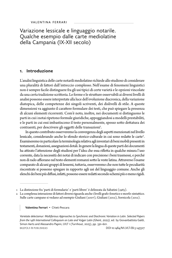 Variazione lessicale e linguaggio notarile. Qualche esempio dalle carte mediolatine della Campania (IX-XII secolo), Page 1 of 1