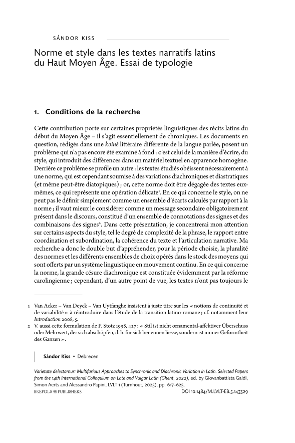 Norme et style dans les textes narratifs latins du Haut Moyen Âge . Essai de typologie, Page 1 of 1