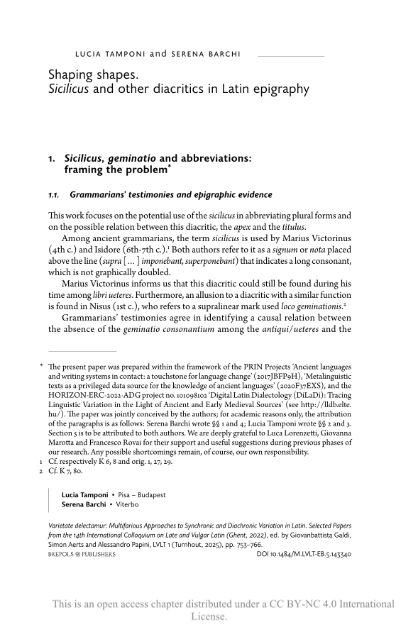 Shaping shapes. Sicilicus and other diacritics in Latin epigraphy, Page 1 of 1