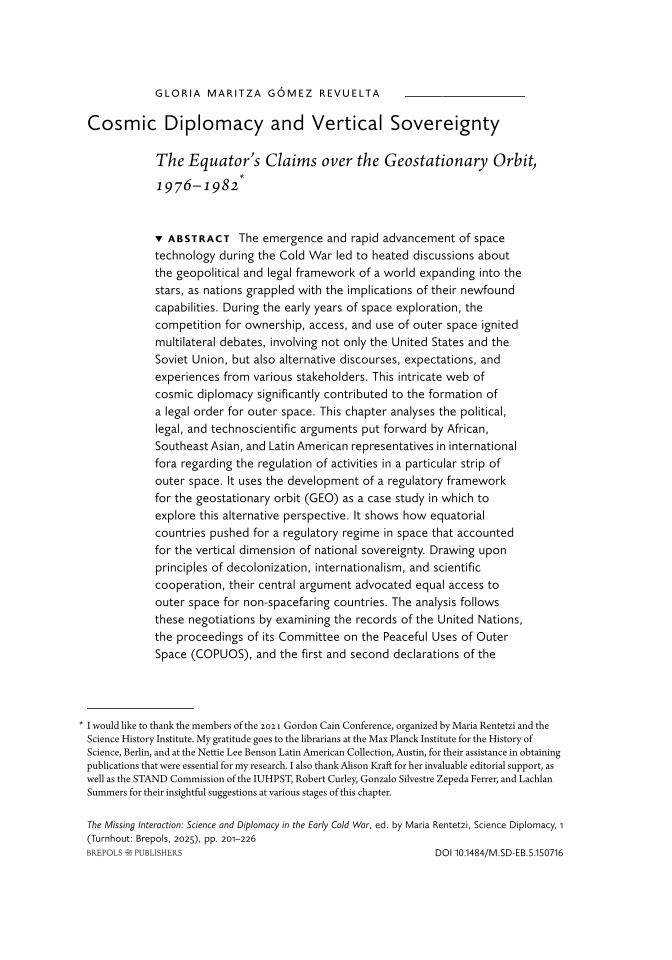 Cosmic Diplomacy and Vertical Sovereignty. The Equator’s Claims over the Geostationary Orbit, 1976–1982 * , Page 1 of 1