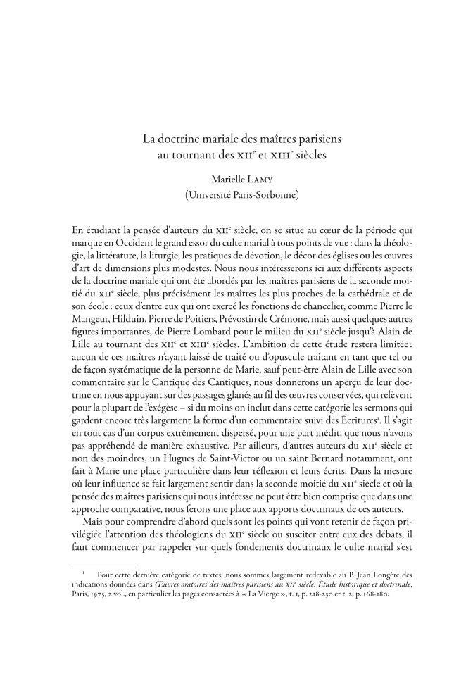 La doctrine mariale des maîtres parisiens au tournant des xii e et xiii e siècles, Page 1 of 1