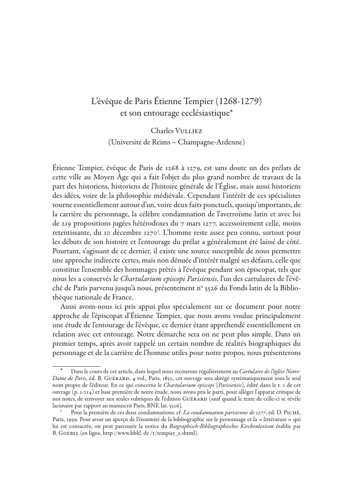L’évêque de Paris Étienne Tempier (1268-1279) et son entourage ecclésiastique, Page 1 of 1
