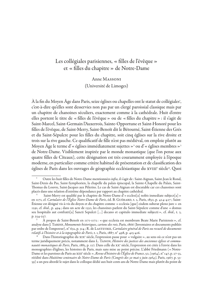 Les collégiales parisiennes, « filles de l’évêque » et « filles du chapitre » de Notre-Dame, Page 1 of 1