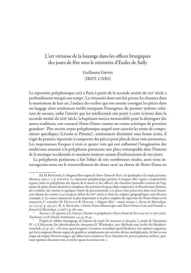L’art virtuose de la louange dans les offices liturgiques des jours de fête sous le ministère d’Eudes de Sully, Page 1 of 1