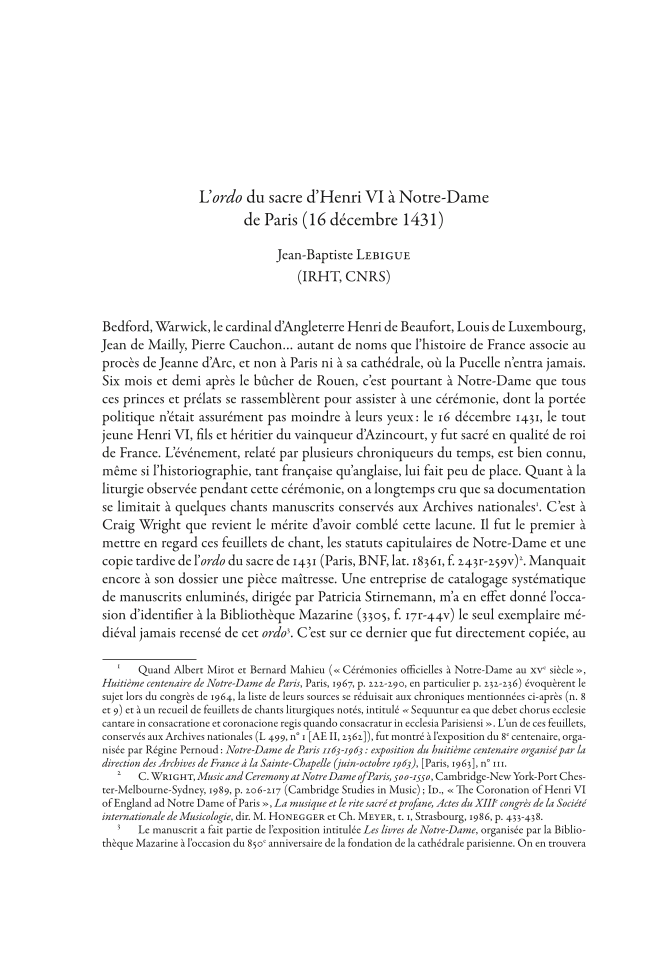 L’ordo du sacre d’Henri VI à Notre-Dame de Paris (16 décembre 1431), Page 1 of 1