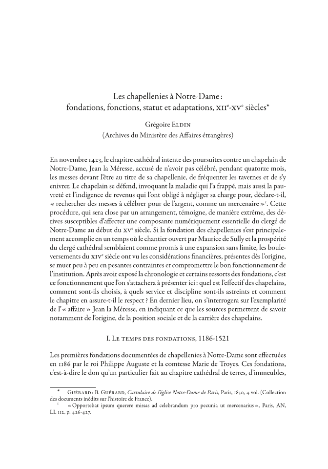 Les chapellenies à Notre-Dame : fondations, fonctions, statut et adaptations, xii e-xv e siècles, Page 1 of 1