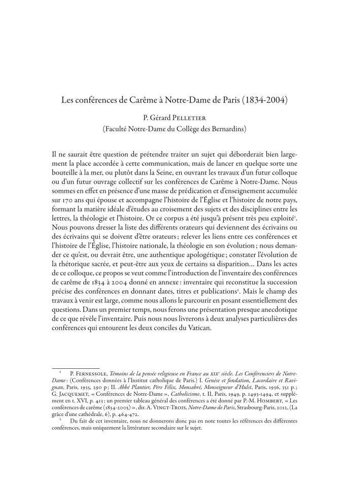 Les conférences de Carême à Notre-Dame de Paris (1834-2004), Page 1 of 1