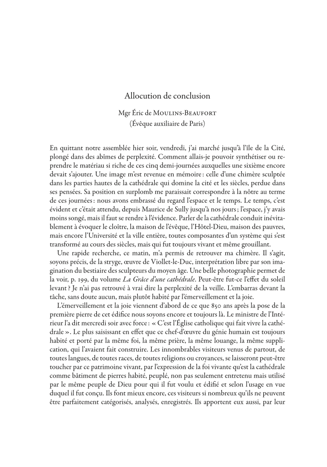 En 1163, débute le chantier de l’actuelle cathédrale Notre-Dame de Paris. Construit en un siècle environ, le nouvel édifice devient vite un des monuments les plus fameux de France, symbolisant jusqu’à aujourd’hui l’évêque, l’Église et la ville de Paris. Huit siècles et demi après le début de la construction, un congrès scientifique a réuni du 12 au 15 décembre 2012 des spécialistes d’histoire religieuse, sociale, liturgique, artistique, intellectuelle et institutionnelle. Le livre issu de ce colloque présente un ensemble d'études faisant le point sur l’église cathédrale jusqu’à aujourd’hui et sa fonction médiatrice revendiquée entre Dieu et les hommes : du contrôle sur l’Université aux conférences de Carême, en passant par l’action méconnue du chapitre cathédral, les relations avec la Couronne, le renouvellement du chant sacré, la célébration des grands événements de la nation, l’impact sur l’esthétique néo-gothique.