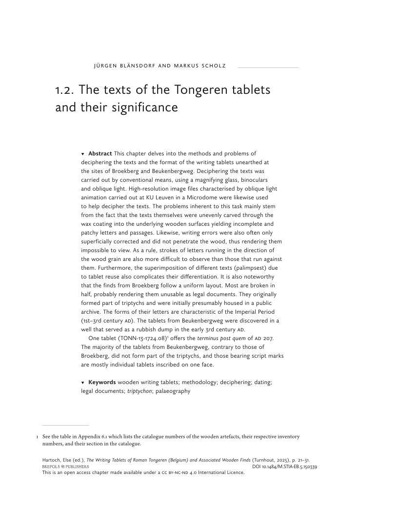 - Publication: The Writing Tablets of Roman Tongeren (Belgium) , pp 21-31